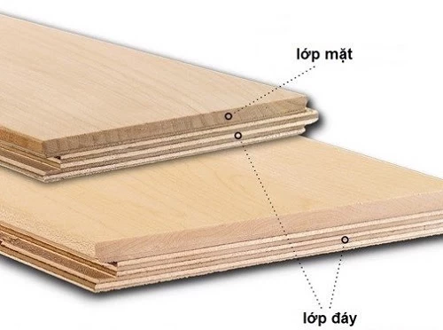 Phần đáy: Lớp này được chế tạo theo hai phương pháp: sử dụng Plywood hoặc ghép thanh gỗ tự nhiên. Với phương pháp Plywood, người ta ép và dán khoảng 10 đến 15 lớp ván mỏng (1mm-2mm) lại với nhau để tạo thành một khối vững chắc. Các loại gỗ thường được chọn để làm Plywood bao gồm Tràm Bông Vàng, gỗ Cao Su hoặc gỗ Sồi – đều là những loại gỗ đã qua xử lý để đảm bảo độ ổn định và bền vững. Lớp đáy thường có độ dày từ 8mm đến 10mm, và khi hoàn thiện mang đến vẻ đẹp không khác gì ván gỗ tự nhiên nguyên khối.